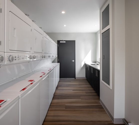- Includes amenity space, gym, and laundry room