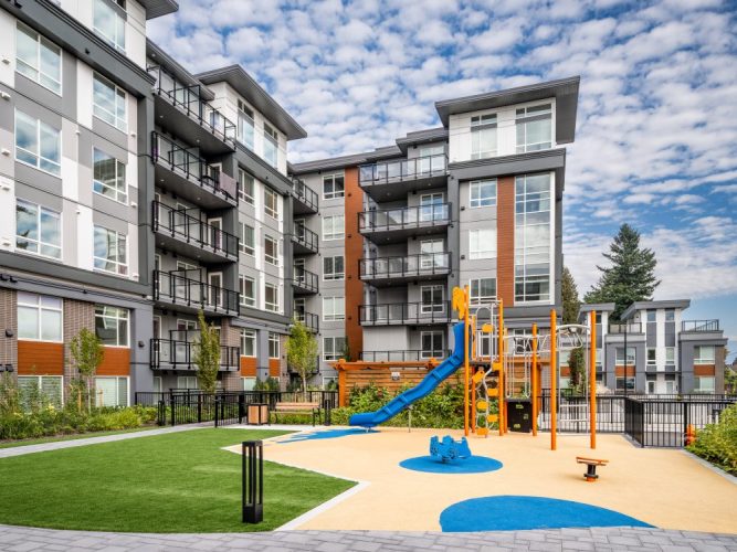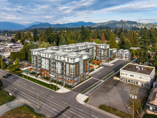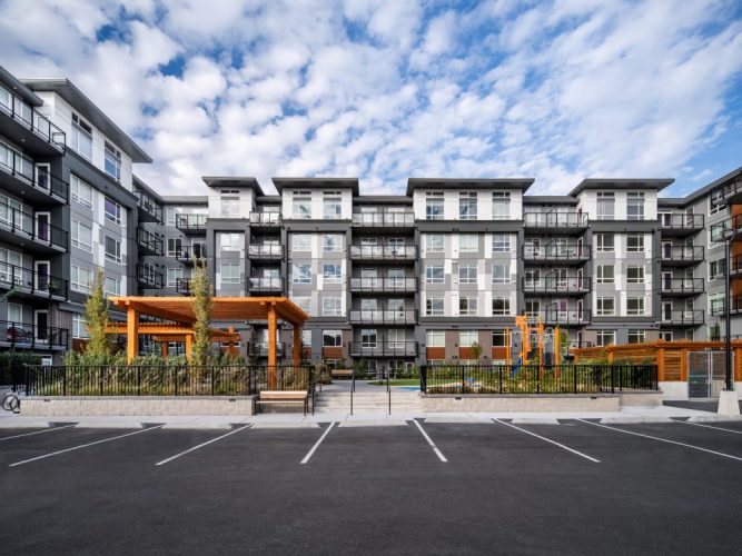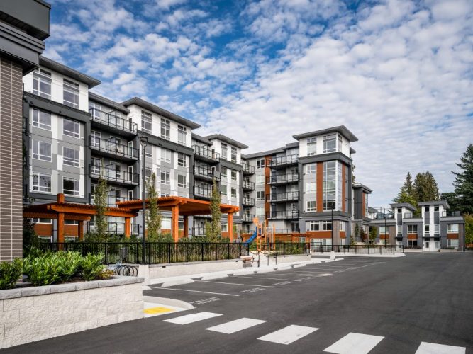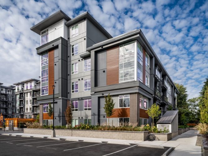 - One 6-storey, 174-unit apartment totalling 211,439 s.f. and two 3-storey townhouse buildings totalling 14,577 s.f., each containing five 3-bed units with rooftop patios