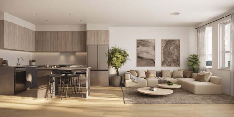 • Walk-out units and a central courtyard support a vibrant streetscape and community connection, while varied massing and recessed balconies add depth and livability